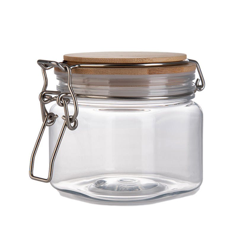 Customized Logo Printed 400ml Multi Uses Airtight Hinged Clip PET Plastic Wide Open Jar