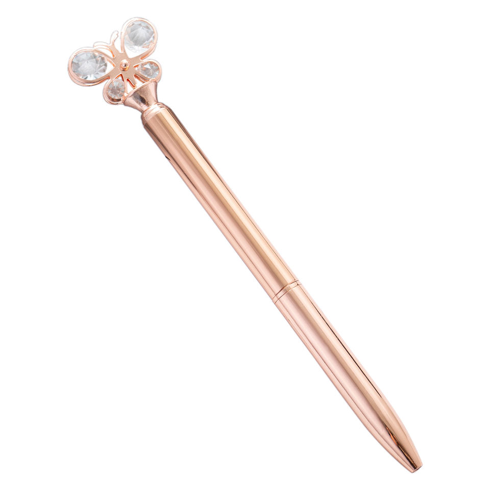 Customized Logo Printing Butterfly Shape Diamond Ballpoint Pen Fancy Metal Promotional Use Multi-Functional Stationery
