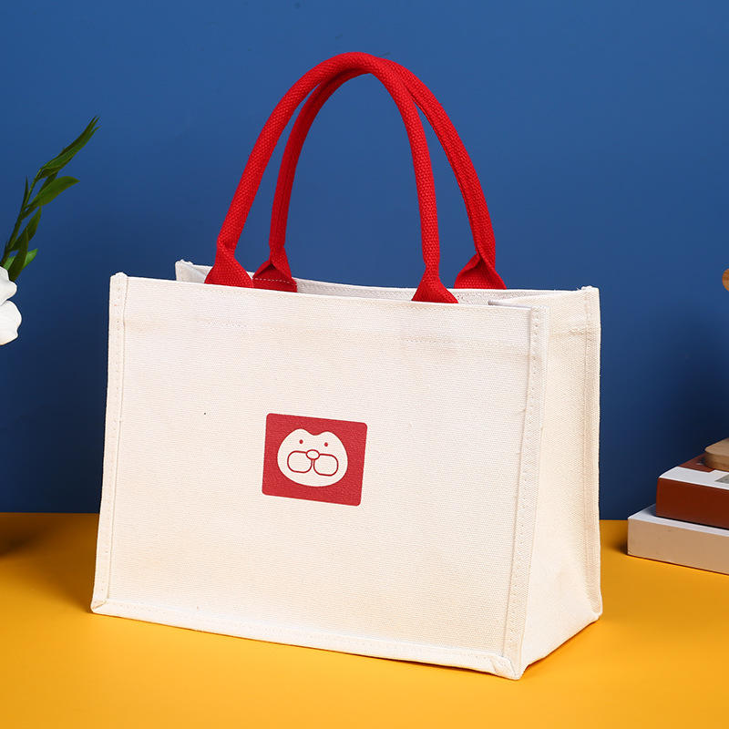 Customized Logo Printing Tote Bag Practical Canvas Shopping Shoulder Bag Cutie Design Recyclable for Tableware Cookware Bedding
