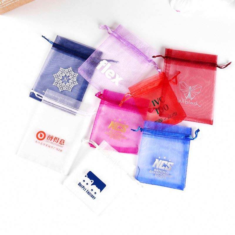 Customized Logo Recyclable Organza Storage Gift Pouch Drawstring Bag