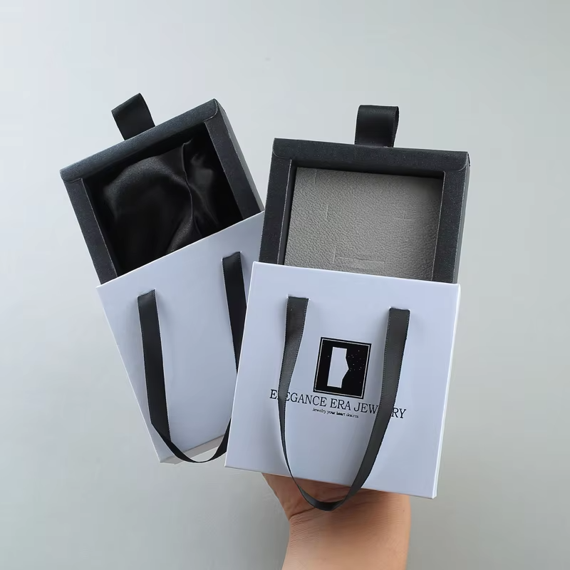 Customized Logo Ring Storage Drawer Jewelry Box With Ribbon Handle Gift Earring Bracelet Jewelry Packaging Jewelry Box