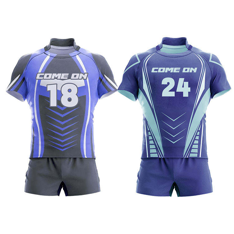 Customized Logo Rugby Uniform Classic Polo-Style Athletic Jersey Set Adjustable Size Stripe Printed Collared Modern Sublimation