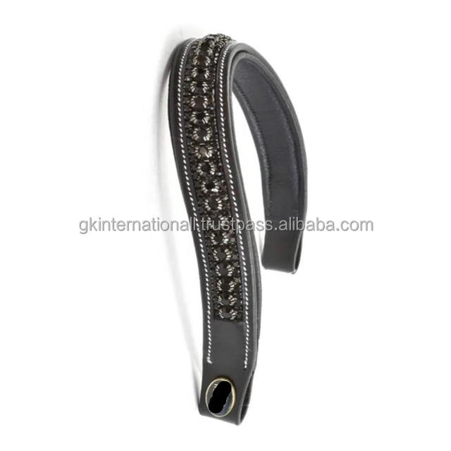 Customized Logo Snap Button Wave Shape Empty channel Padded Leather horse brow band inlaid Sparkling Diamond Crystals Bling