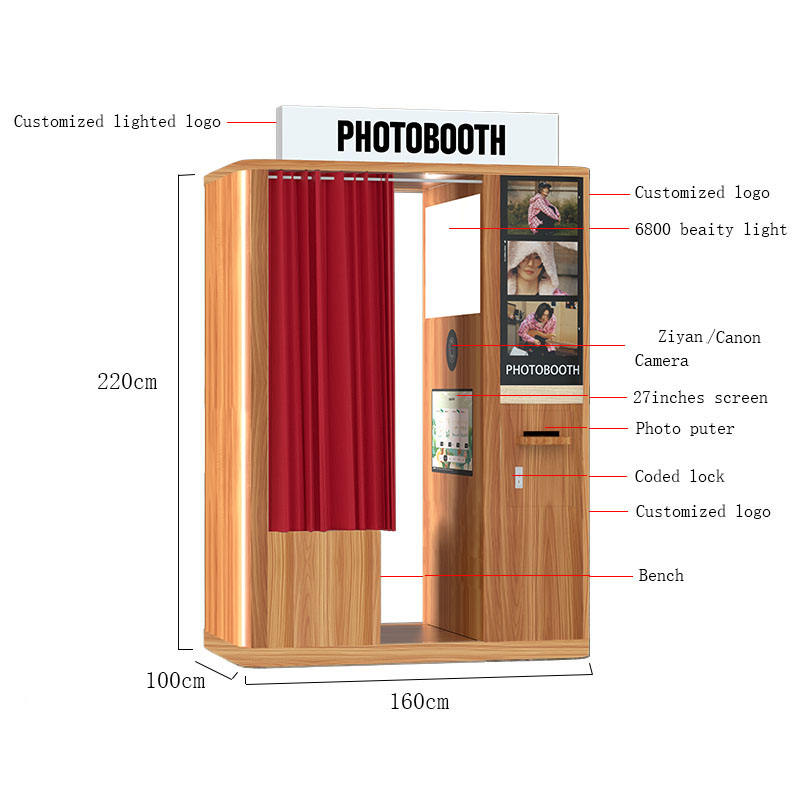 Customized Logo Vintage Photo Booth Dismountable Photo Booth Machine