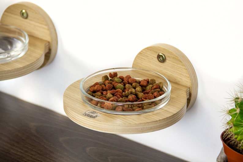 Customized Logo Wall Mounted Pet Feeder Wooden Pet Bowls with 2 Glass Bowl for Cats Dogs
