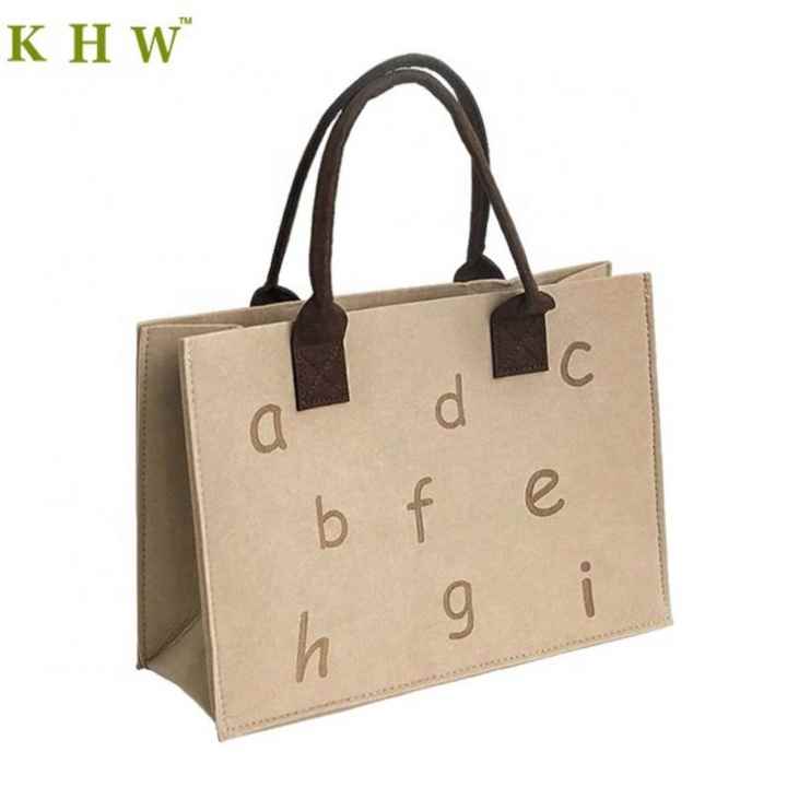 Customized Logo Women Handbag Eco Friendly Advertising Gift Felt Tote Bag Color Stitching Blank Felt Shopping Bag for Girls