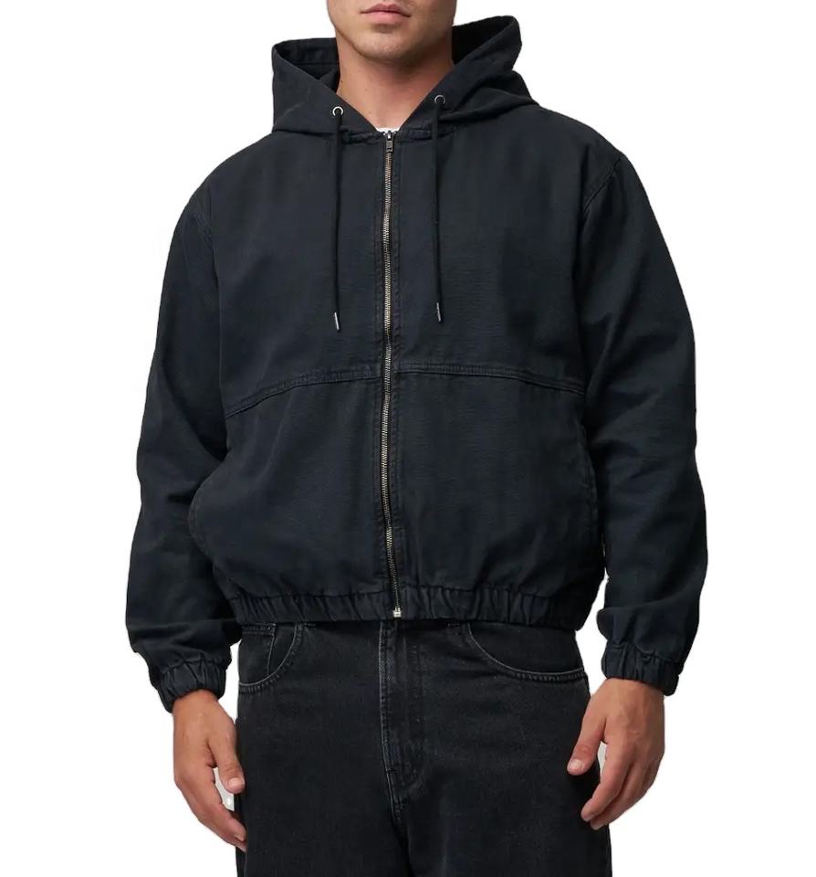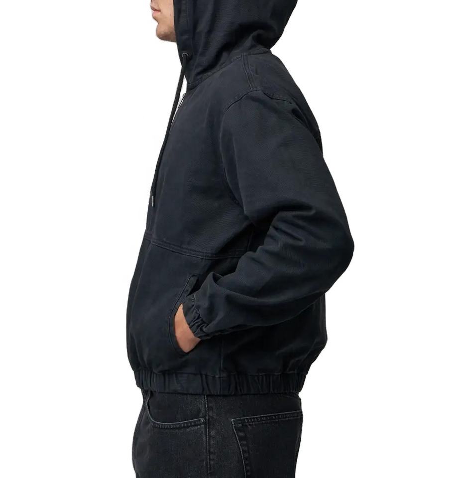 Manufacturer Custom Applique Patch Embroidery logo Denim Cotton Twill Canvas Distressed Rhinestone Detroit Work Jacket Men