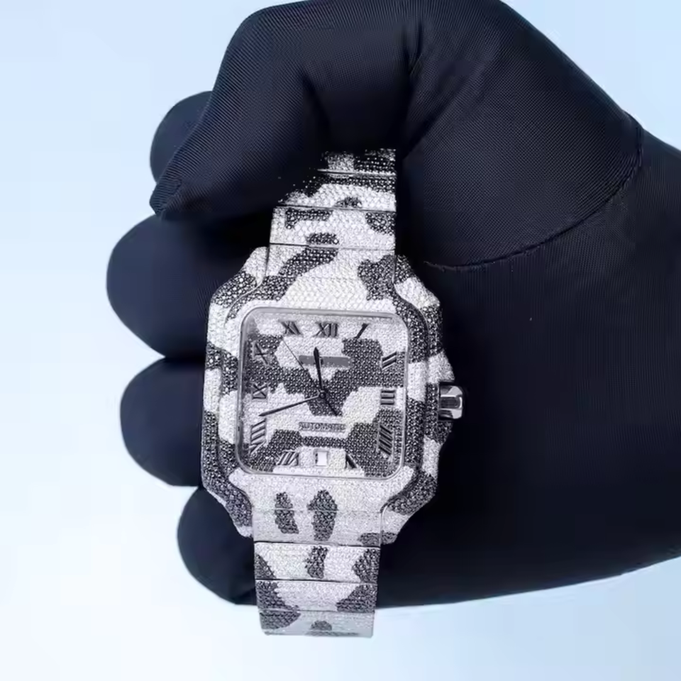 Customized Luxury Analog Quartz Iced Moissanite Diamond Watch New Arrival Hip Hop Style Square Sport Glass Dial Display Limited