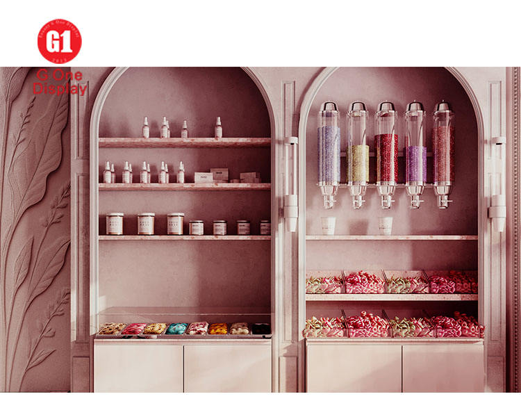 Customized Luxury Beauty Salon Interior Design Wooden Skincare Store Wall Shelf Spa Salon Display Furniture
