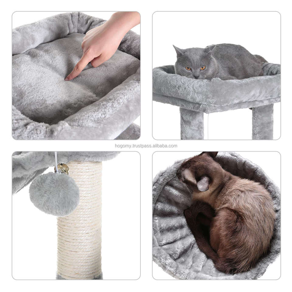 Customized Luxury Eco-Friendly 4-Level Large Space Plush Wooden Cat Tree with Cat Scratcher and Toy