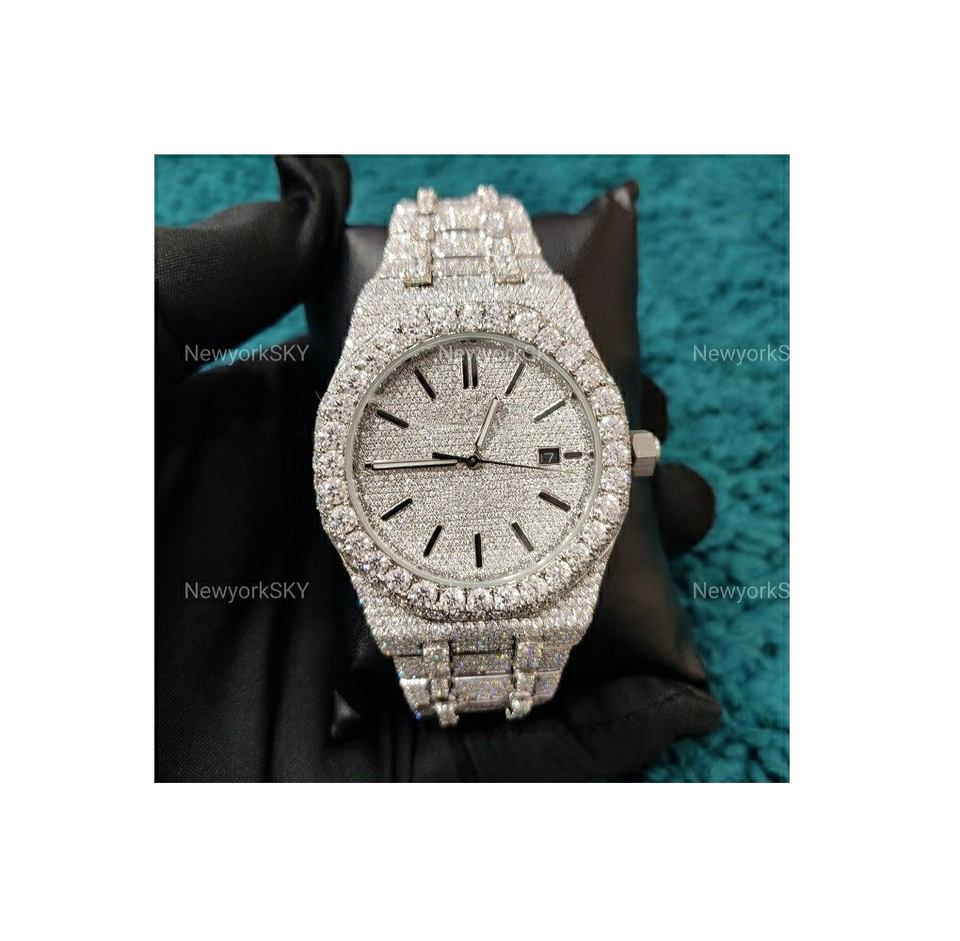 Customized Luxury Fashion 41MM White Moissanite Diamond Quartz Watch Stainless Steel Ready Bulk Stock Customized Luxury Jewelry