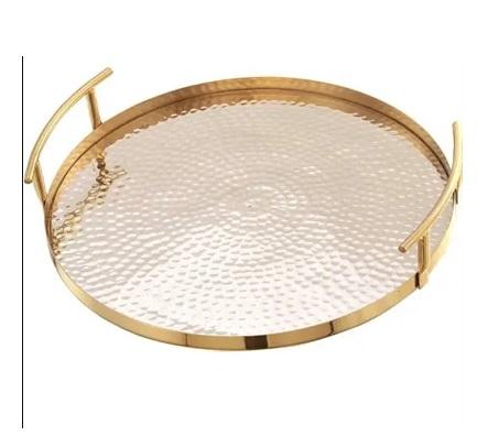 Customized Luxury Golden Rectangle Stainless Steel Charger Plates Instagram Trending Wedding Serving Tray Handle Dishes Plates