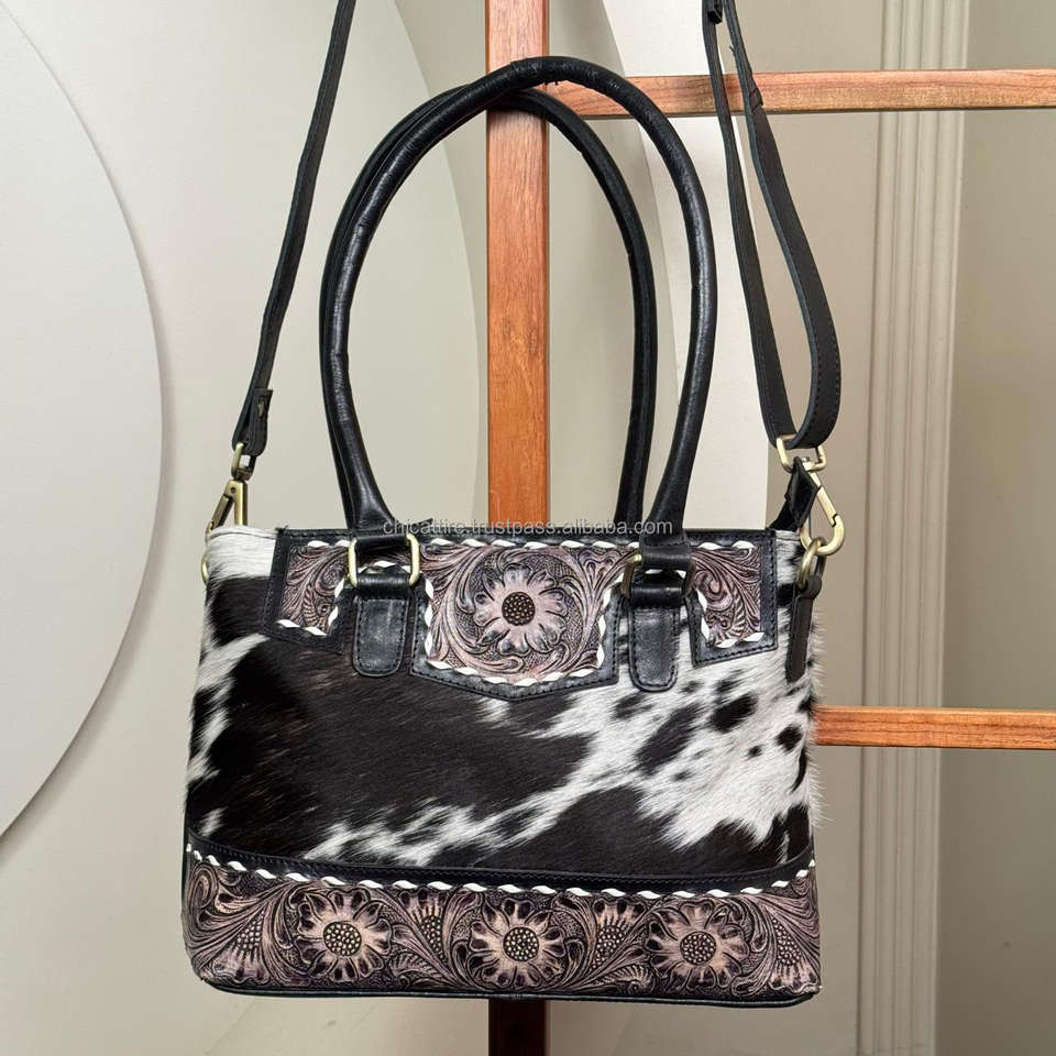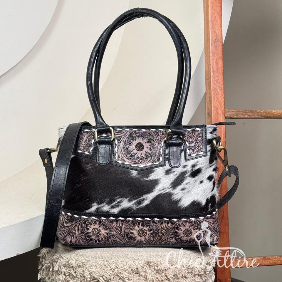 Hand Tooled Cowhide Leather Crossbody Tote Bag