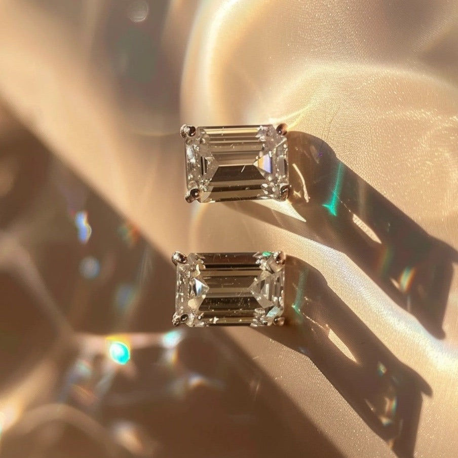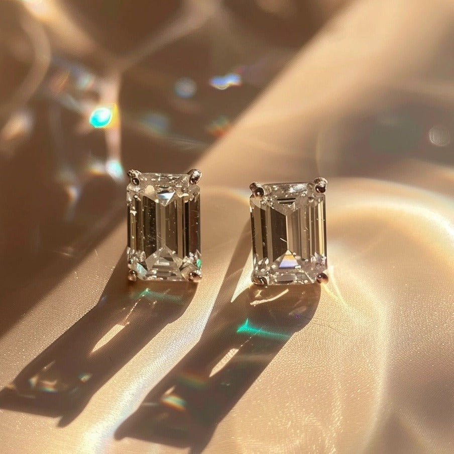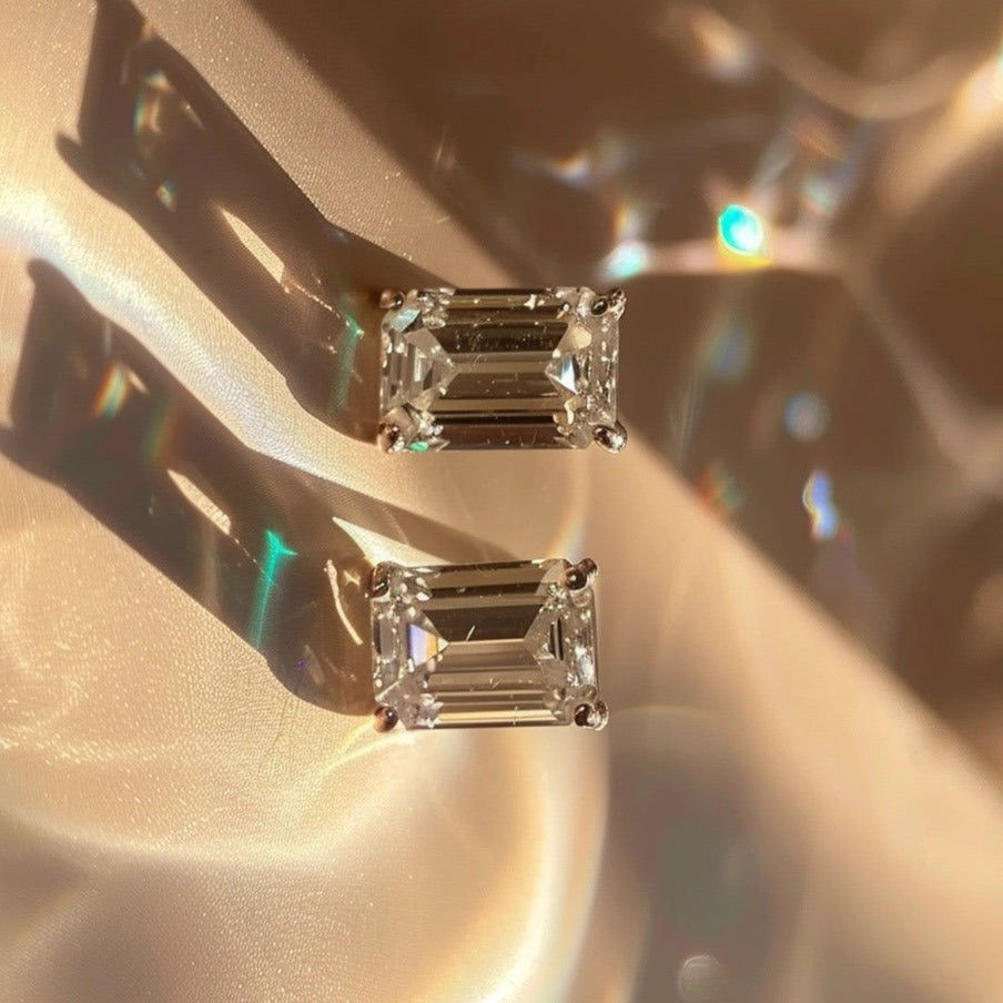 Customized Luxury Hip Hop Earrings Women 10K 14K 18K Solid Gold Studs Lab-Grown Diamonds Emerald Cut Diamond Cute Style