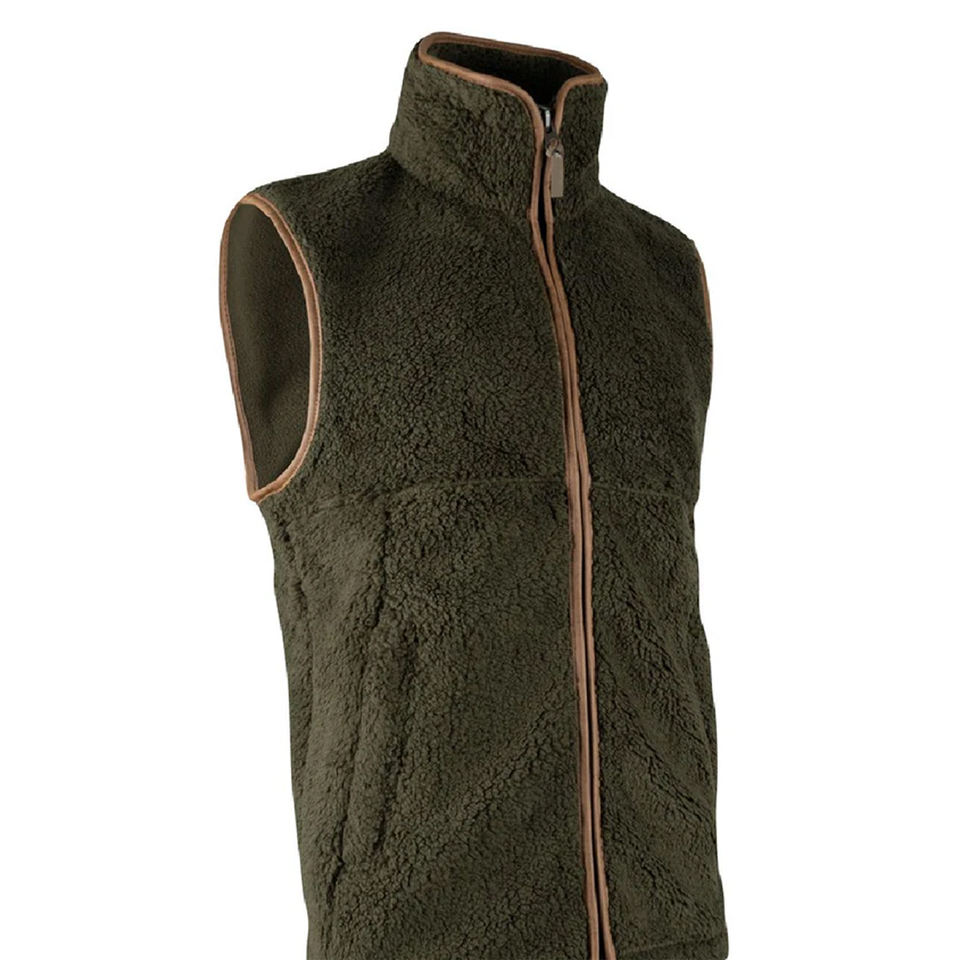 Customized Luxury Men's Breathable Fleece Shooting Vest O Neck Sleeve Less Gilet in Olive Green High Quality Winter Outer Wear
