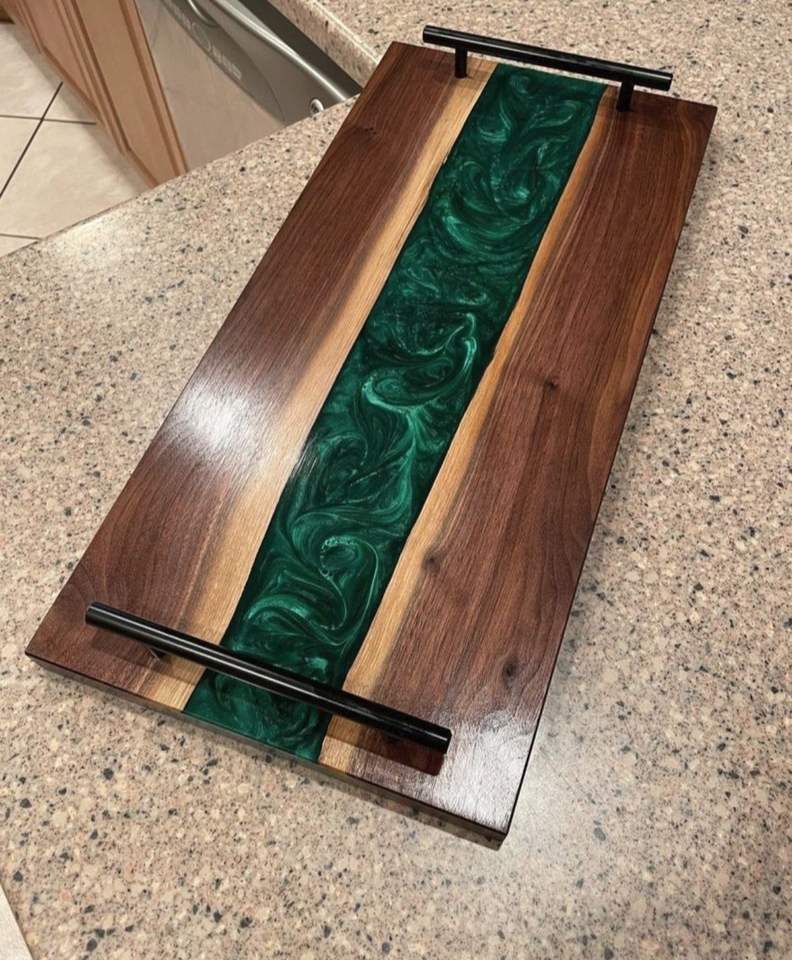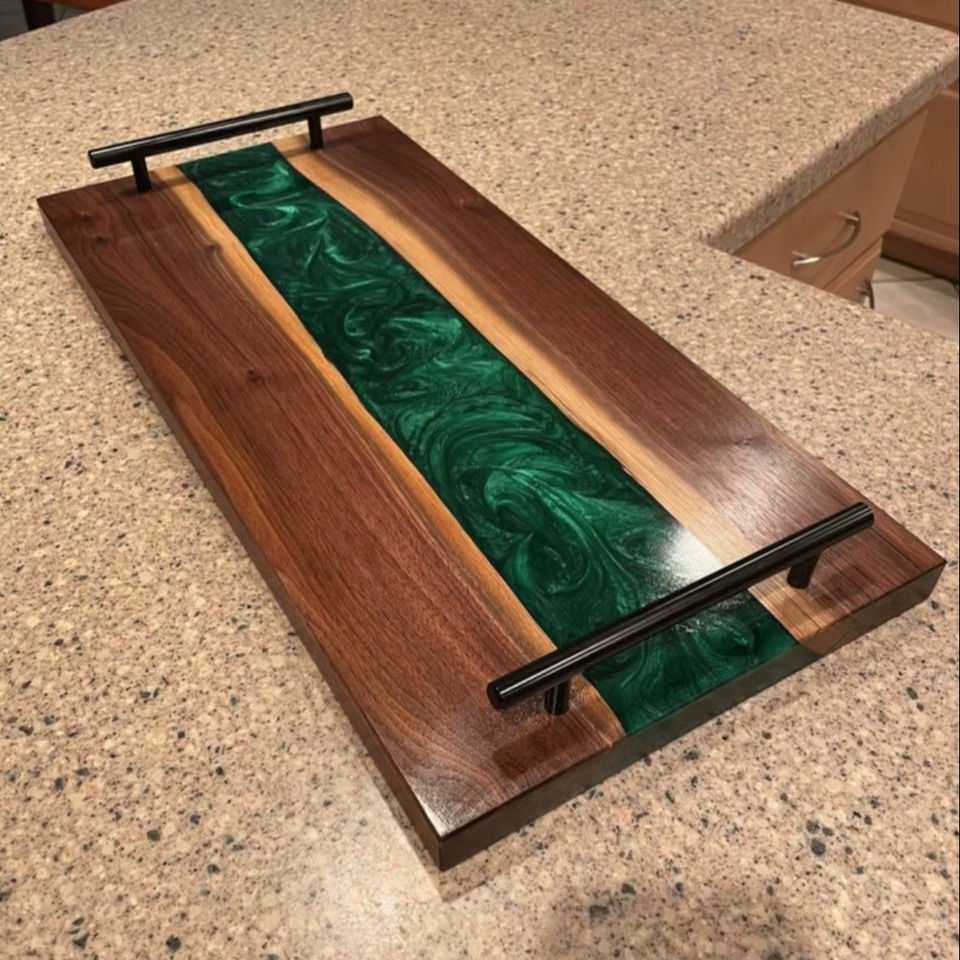 Customized Luxury Modern Acacia Wood Epoxy Resin Decorative Tray for Serving Wholesale Available Kitchen Accessories