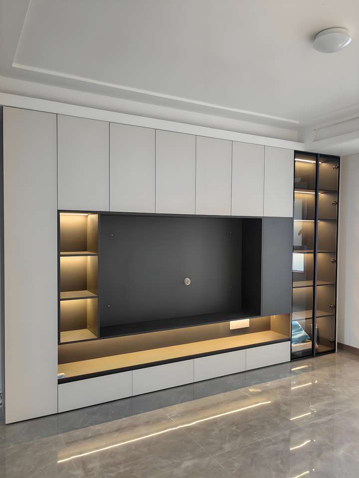 Customized Luxury Tv Stand Living Room Dining Bedroom Hall Integrated Whole Wall Lighting Elegant Wood Panel Design Whole House