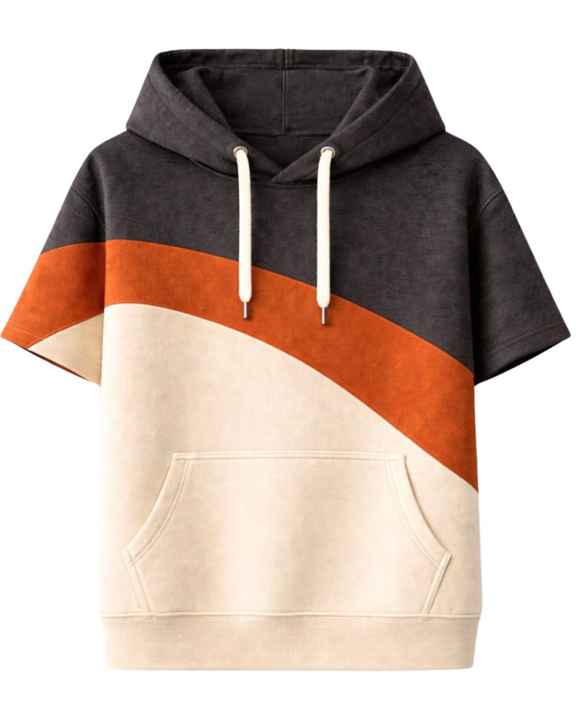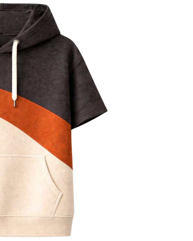 Customized Men Charcoal Rust Color Block Short Sleeve Hoodie Pullover Cotton Fleece Casual Streetwear Kangaroo Pocket Sweatshirt