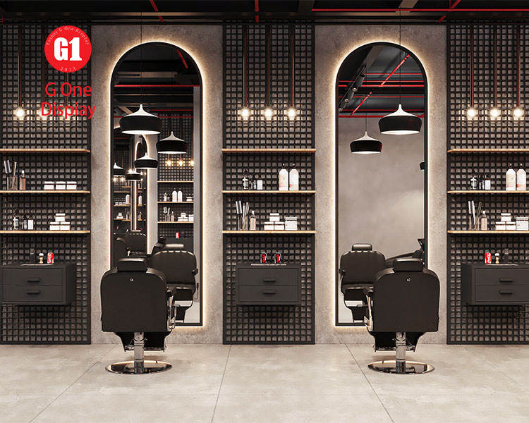 Customized Men Salon Store Interior Deco Modern Barbershop Display Furniture for Barber Shop Fitting