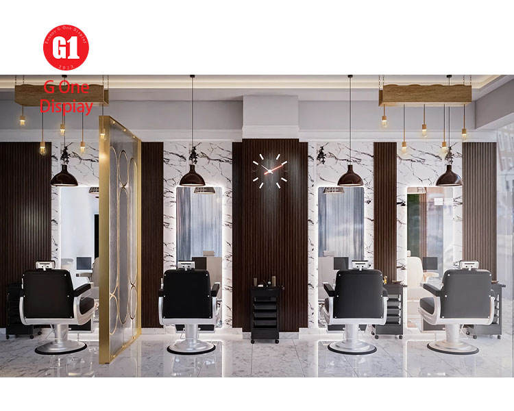 Customized Men Salon Store Interior Deco Modern Barbershop Display Furniture for Barber Shop Fitting
