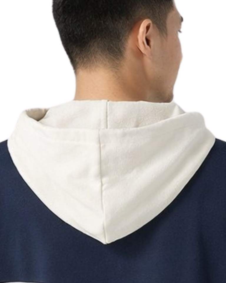 Customized Men Short Sleeve Hoodie T Shirt Navy Blue And White Color Block Casual Pullover Hooded Top Soft Cotton Summer Wear