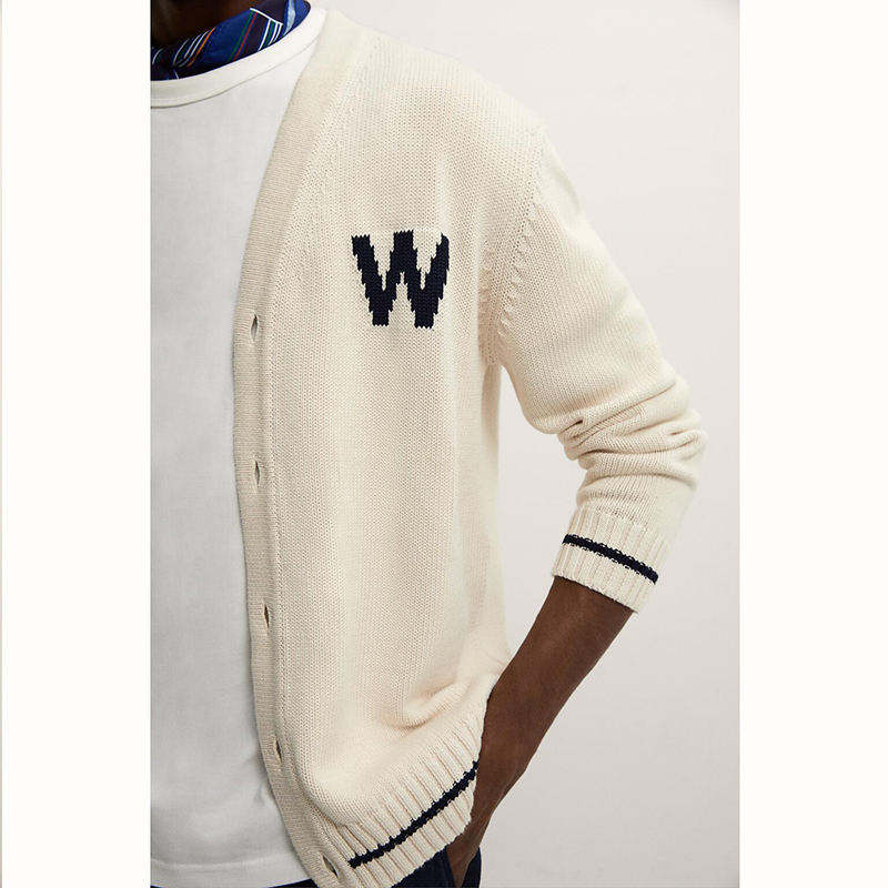 Customized Men's Jacquard Cotton Sweater With Skull Pattern Intarsia Single Breasted Pocket Knitted Cardigan