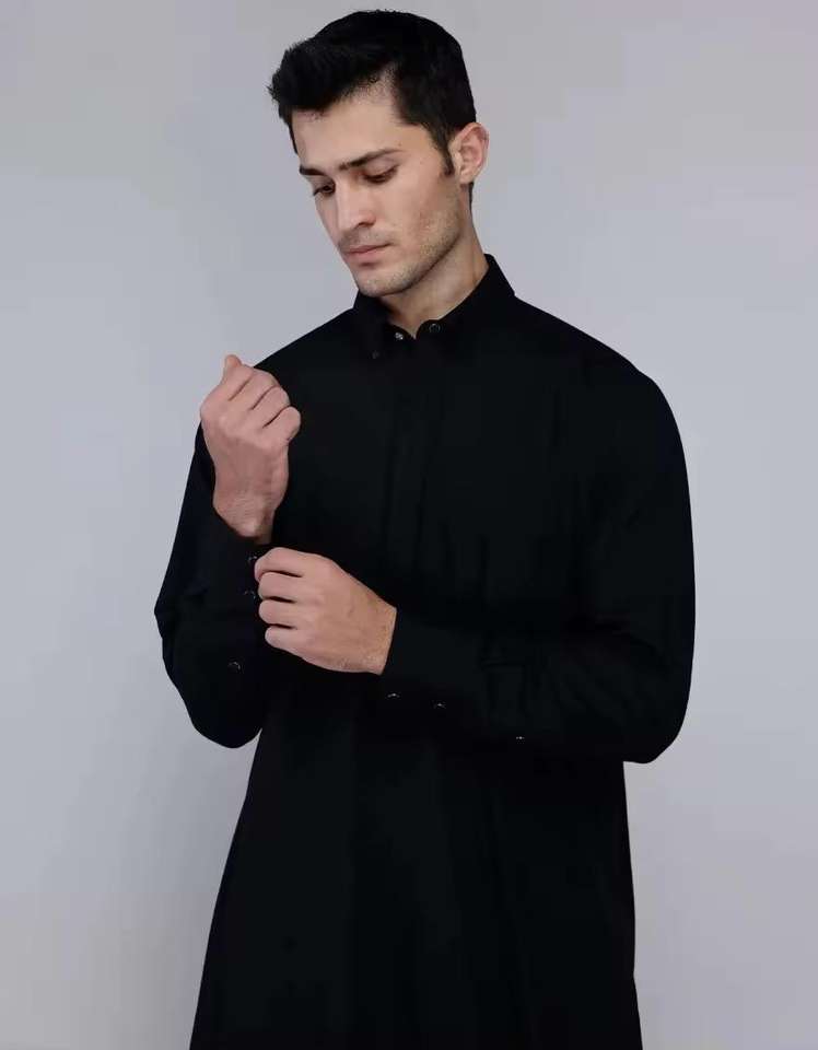 Customized Men's Thobe/Daffah Solid Color Long Sleeved Fashion Muslim Wear for Spring Casual Style