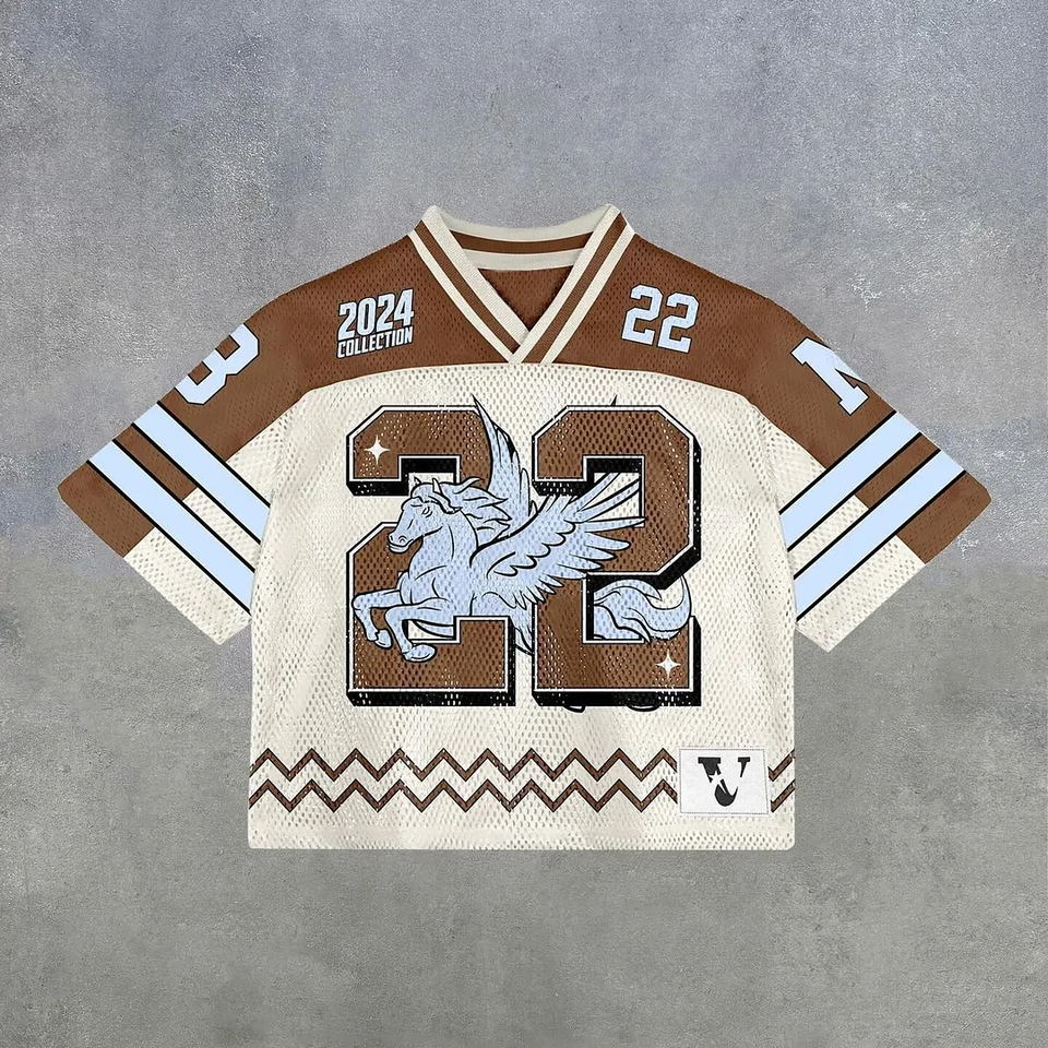 Customized Men's Trendy Unisex Oversized Boxy Cropped Mesh Jersey T-Shirt Baggy V-Neck Performance Print Design
