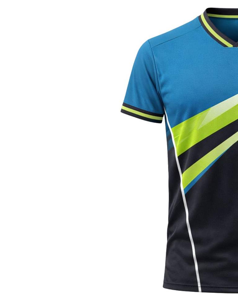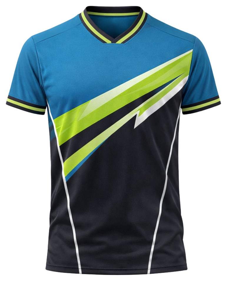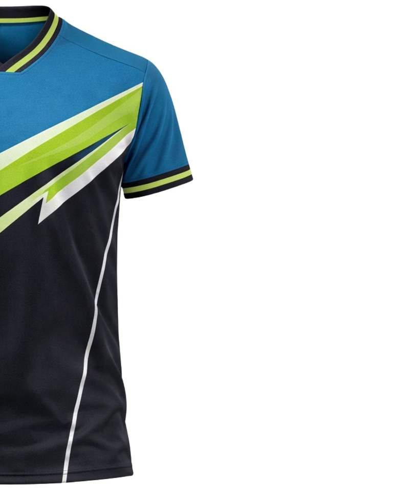 Customized Mens Blue Black Lime Sports T Shirt Short Sleeve V Neck Breathable Quick Dry Athletic Training Gym Running Jersey Top
