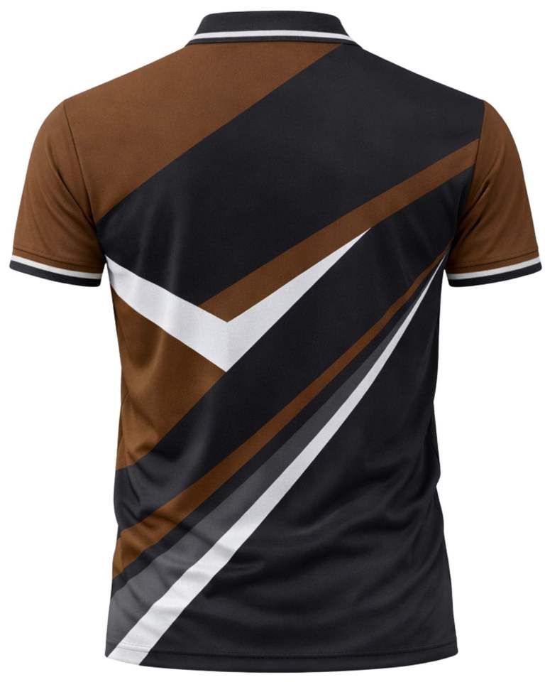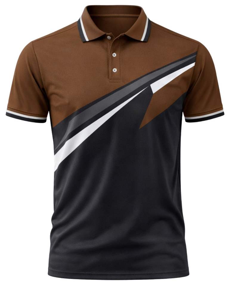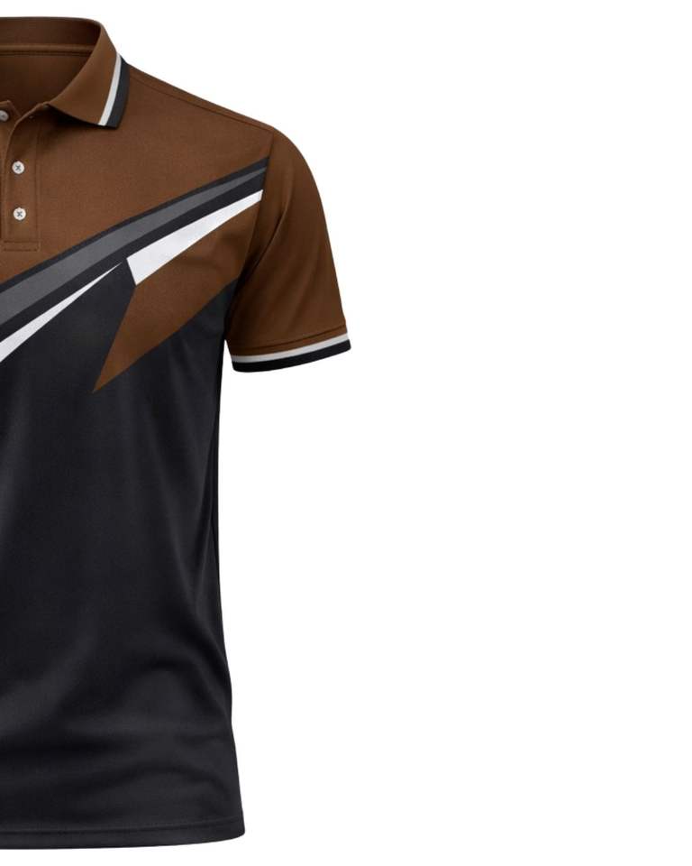 Customized Mens Brown And Black Polo Shirt Short Sleeve Contrast Panel Breathable Polyester Sports Golf Casual Training T Shirt