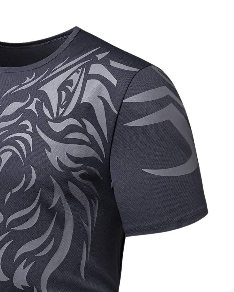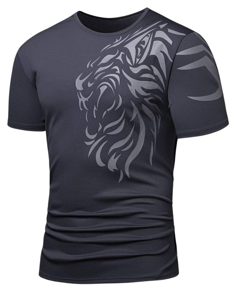 Customized Mens Dark Gray Polyester Compression T Shirt With Matte Lion Print Athletic Gym Fitness Wear Short Sleeve Sports Top