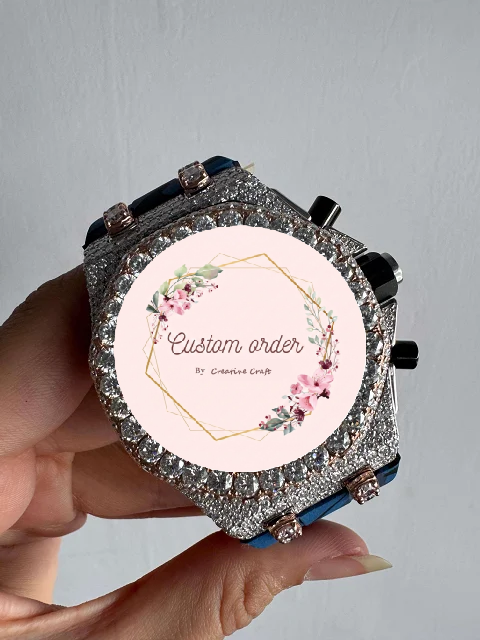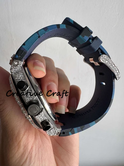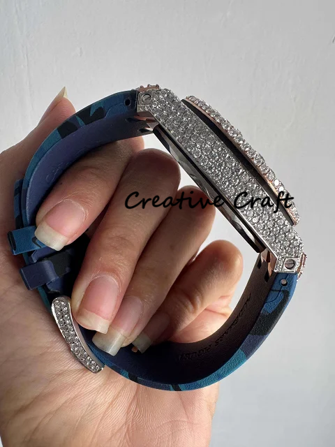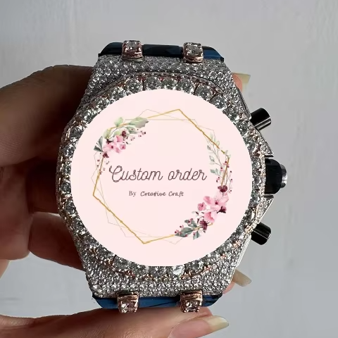 Customized Mens Round Dial Moissanite Diamond Watch Rubber Band Hip Hop Luxury Sapphire Crystal Watch