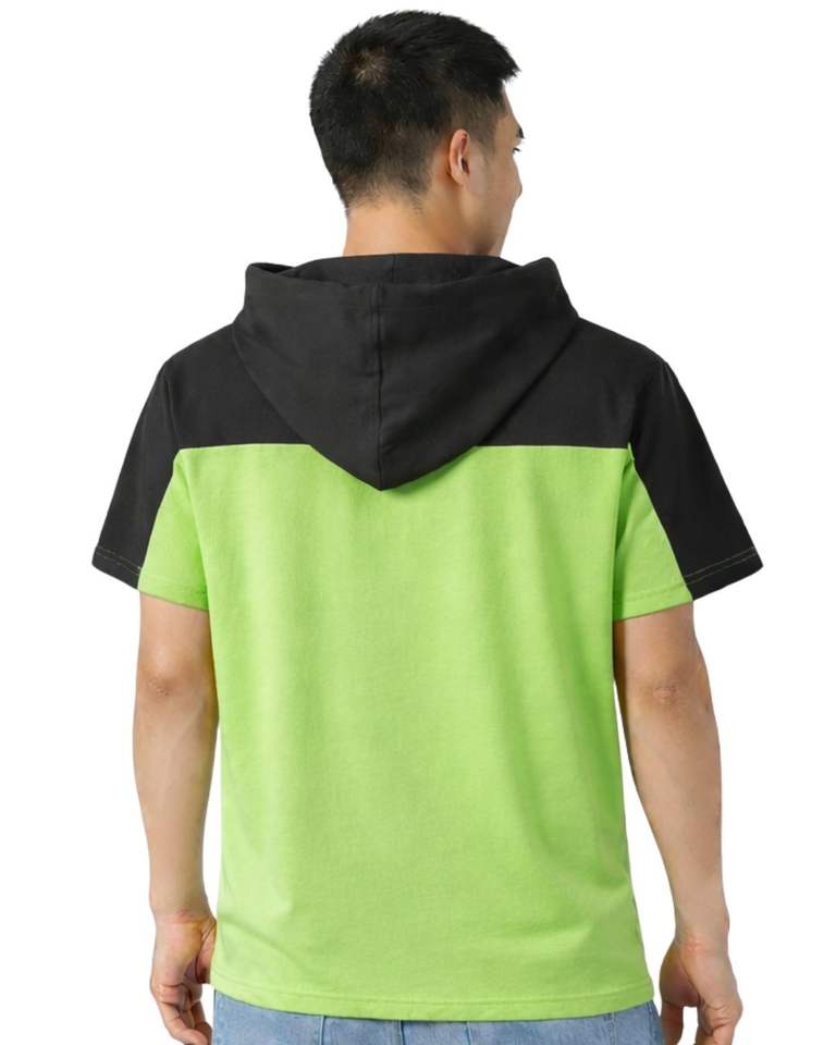 Customized Mens Short Sleeve Hoodie T Shirt Casual Pullover Hooded Top Soft Cotton Summer Wear Lime Green Black Color Streetwear
