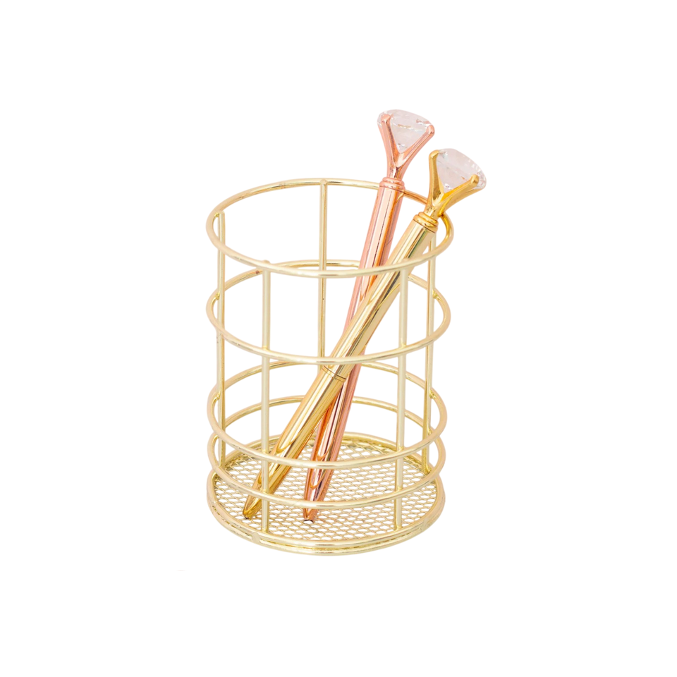 Customized Metal Pen Pencil Stand Holder With Wood Base School Desktop Office Container Pen Holder for Desk Organizer