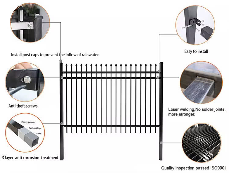 Customized Metal Tubular Fence High Security Anti-Climb Ornamental Temporary Security Fence Durable Horizontal Slat OEM/ODM