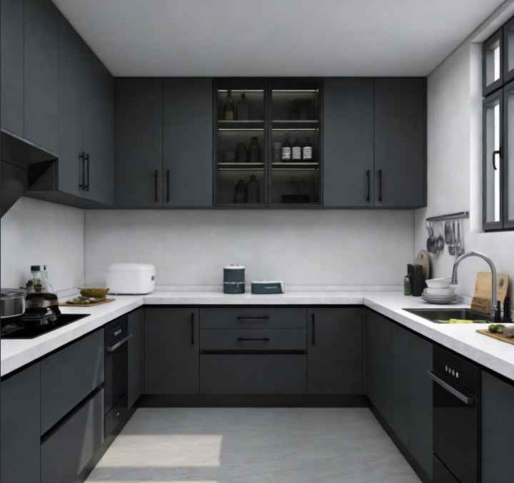 Customized Modern Black Kitchen Cabinets Stainless Steel Material With Hidden Storage and Soft Closing Doors for Apartment