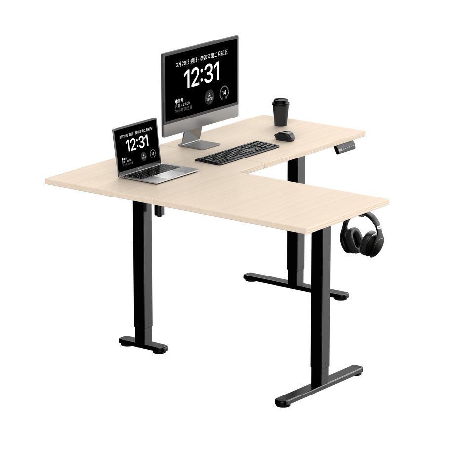 Customized Single Motor 3-Stage Electric Height Adjustable Modern Convertible L-Shaped Commercial Metal Standing Desk 80KG Load