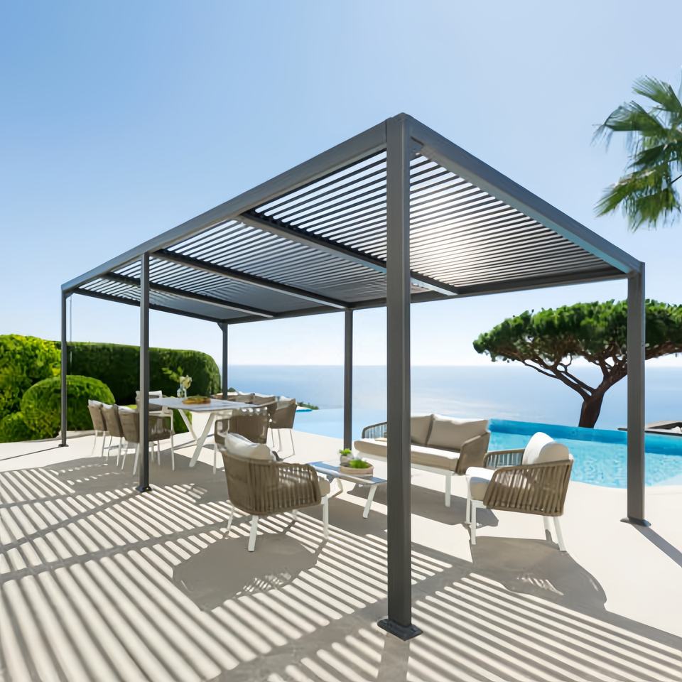 Customized Modern Luxury Aluminum Summerhouses Outdoor Pergola Louvered Pergola with Bright Light Garden Pergola for Sale