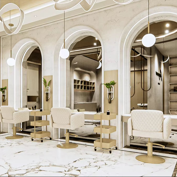 Customized Modern Style Salon Furniture Beauty Salon Interior Design Mirror Hair Salon Design With Led