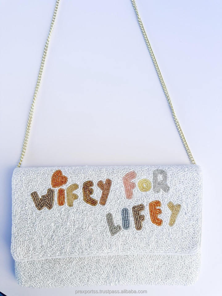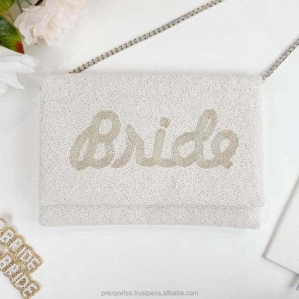 Customized Mrs Name Beaded Clutch Bridal Wedding Handmade Embroidery Purse Personalized Bride Evening Handbag Luxury Party Gift