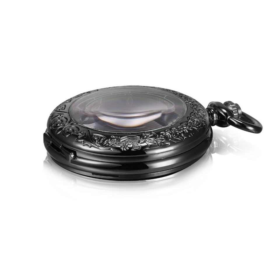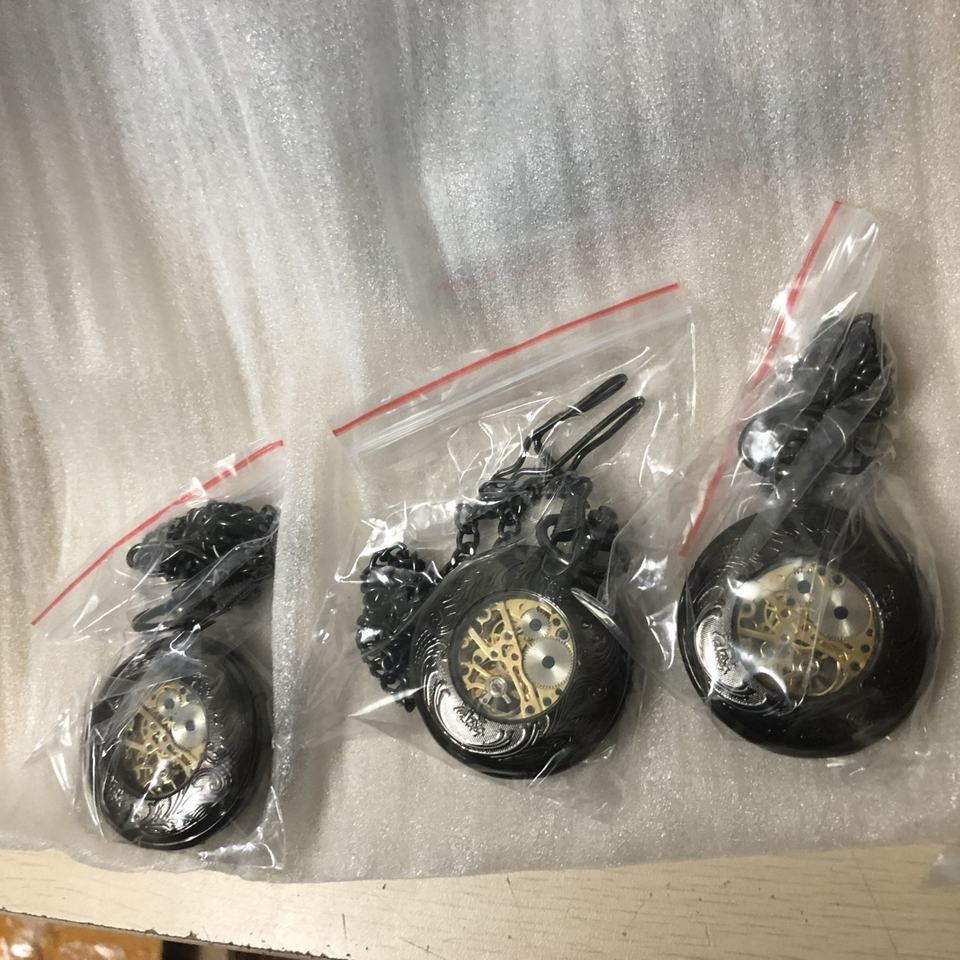 Customized My logo Mechanical Pocket Watch Chain Custom Black Steampunk Fob Pocket Watch Bulk Pendant Mechanical Watch Men