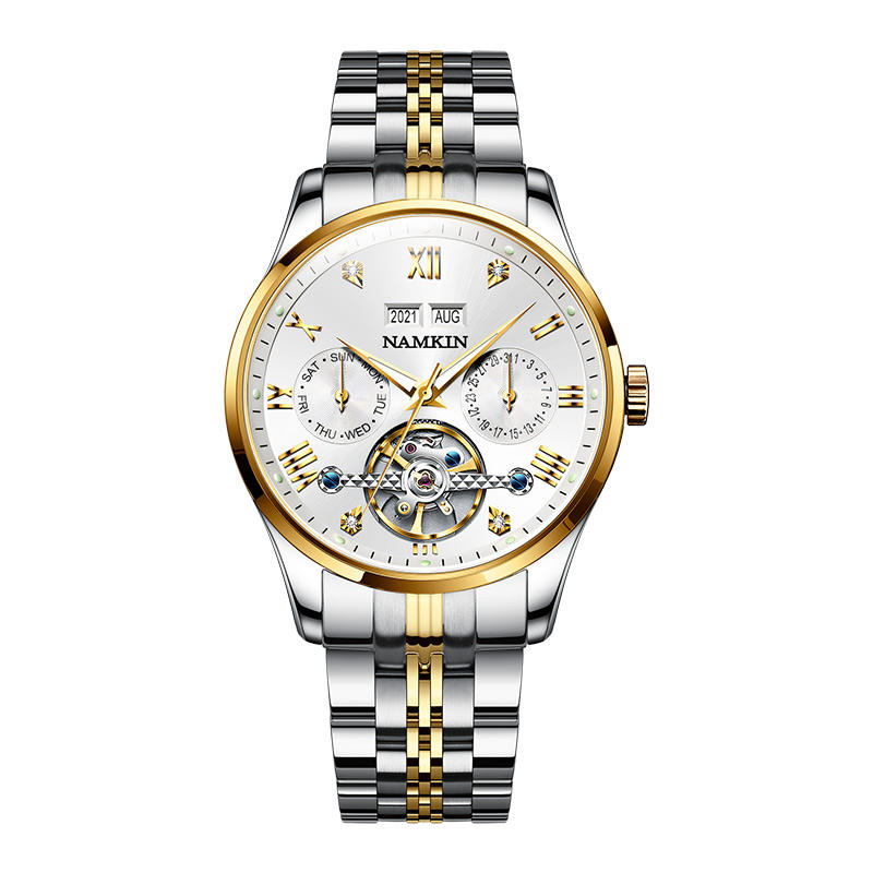 Customized NG8869 Men's Fashion Watch Simple Style Stainless Steel Mechanical Rubber Wood Resin Ribbon Hangzhou Pointer Crown