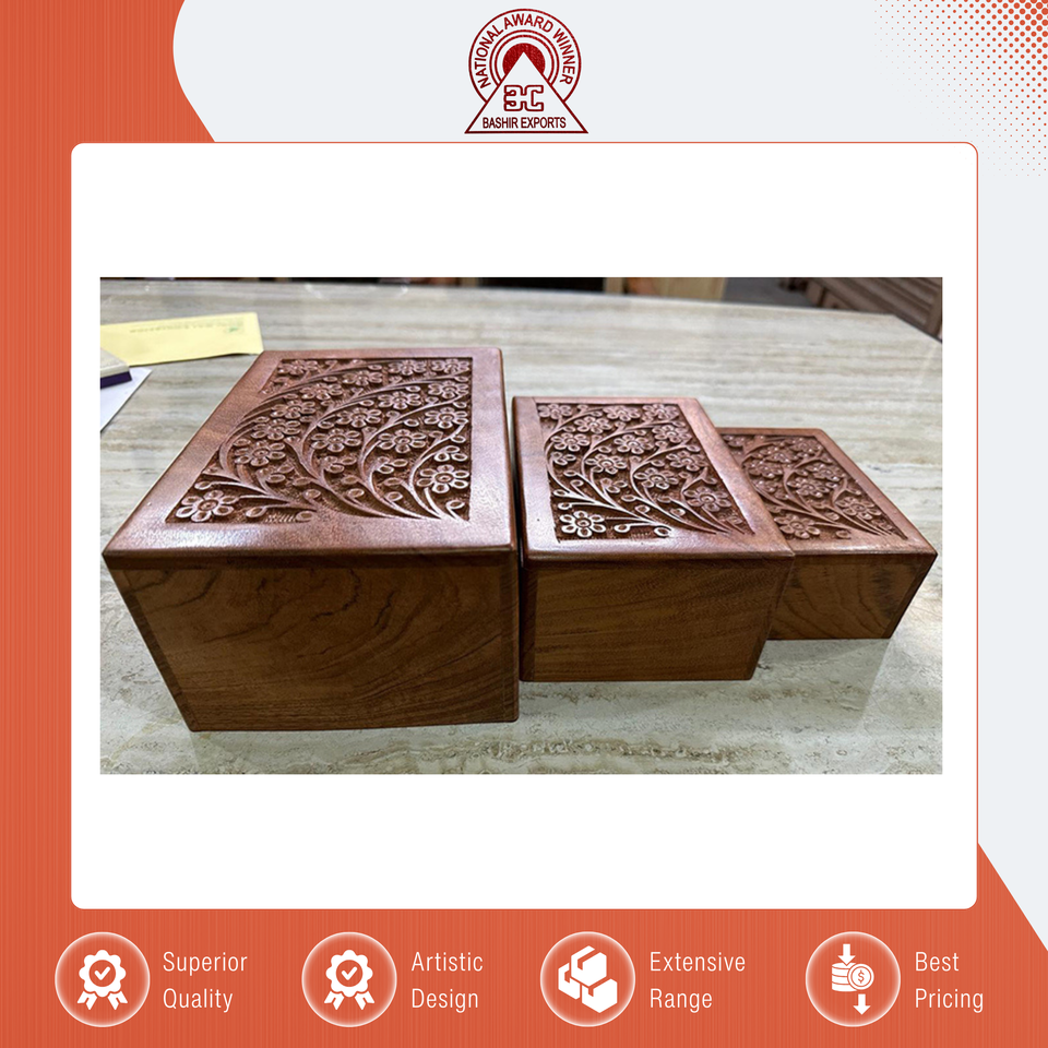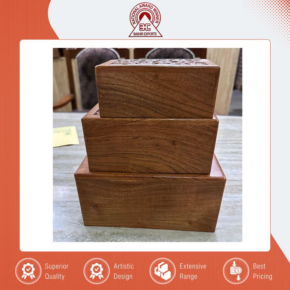 Customized New Design Bulk Exporting Top Quality Handmade Wooden Box Sheesham Wood Cremation Urns Set of 3 for Sale