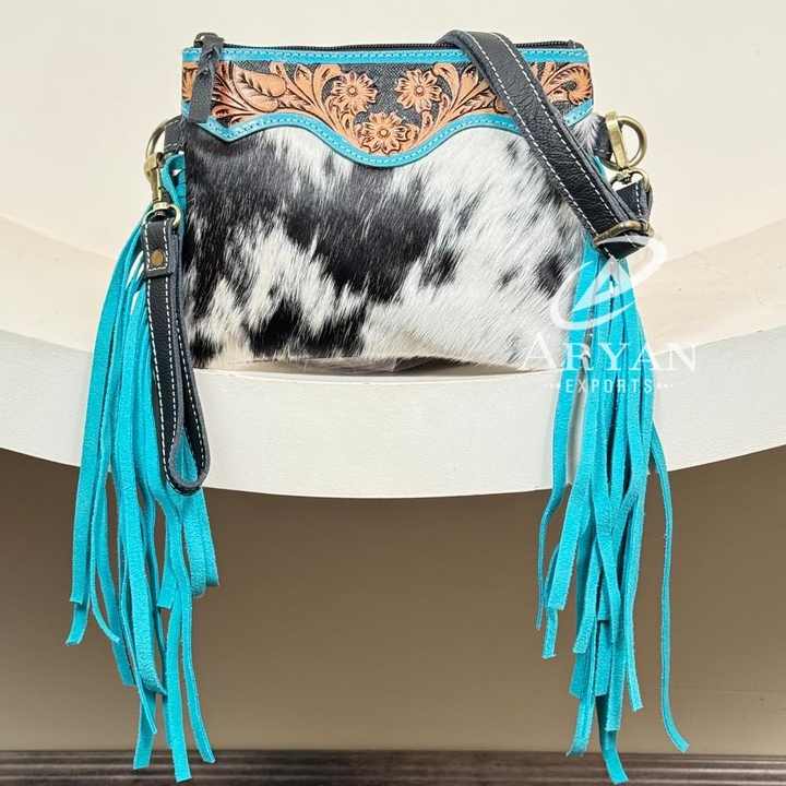 Product name:Hand Tooled Cowhide Leather Fringe Crossbody Bag