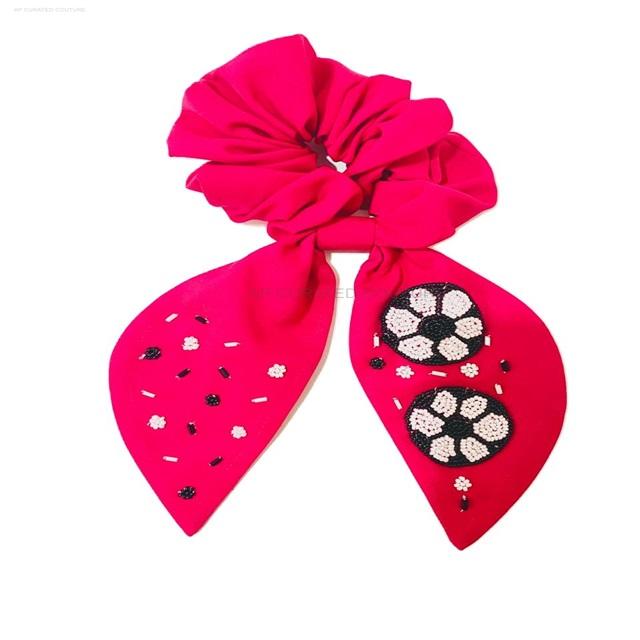 Customized New Launch Indian Hand Embroidery Seed Beaded Scrunchies Hair Accessory with Beaded Scrunchies