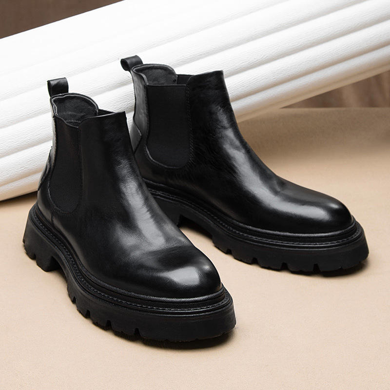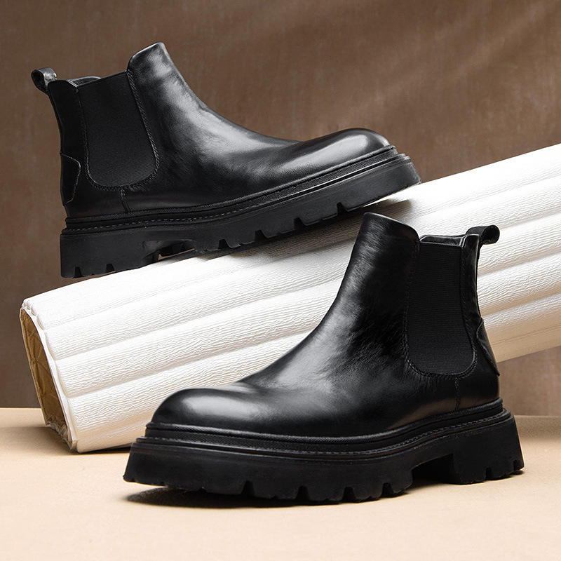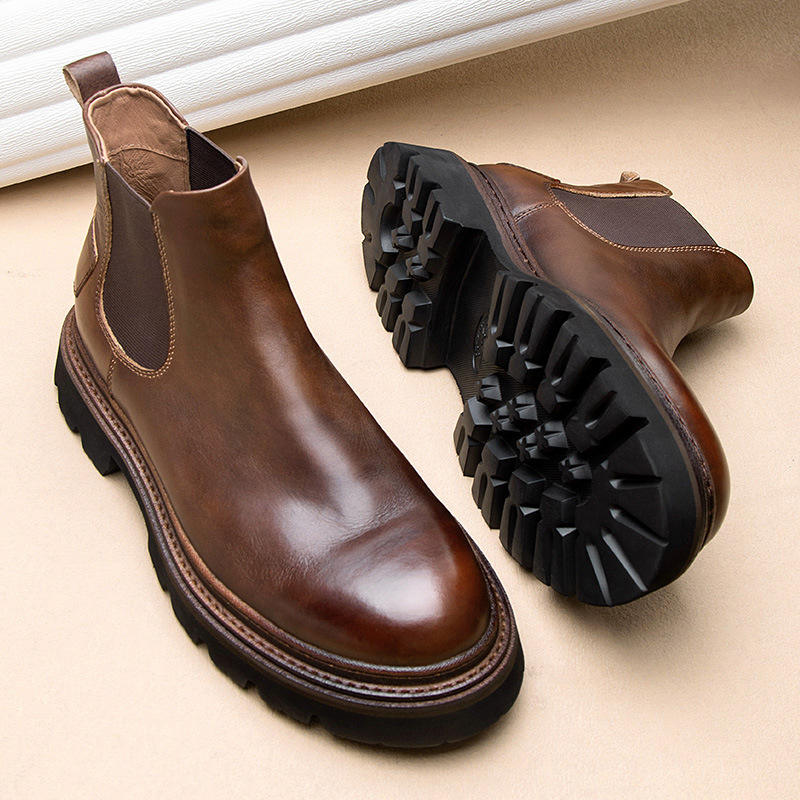 Customized New Men's Square Toe Oxford Boots Genuine Leather Engraved Design Thick Soles Massage Anti-Slip All Seasons
