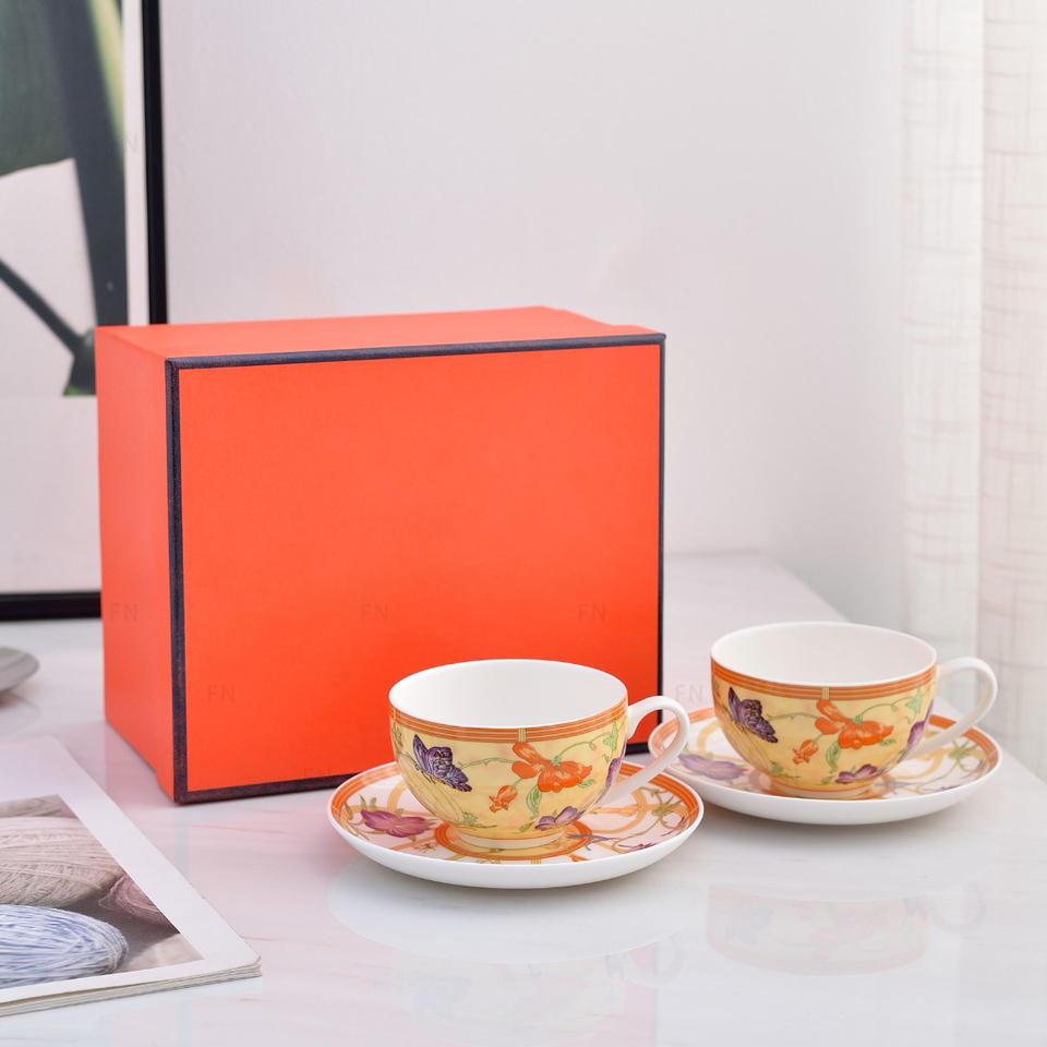 Customized Nordic Luxury 2 Cups Sets Ceramic Tea Cups and Saucers for Living Room for Giveaways