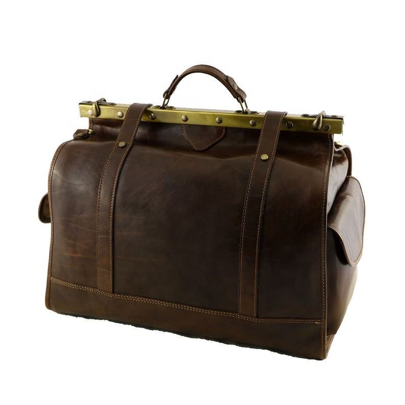 Customized OEM High Quality Genuine Leather Durable Vintage Waterproof Lightweight Duffle Bags Sports Gym Use Hand Characters