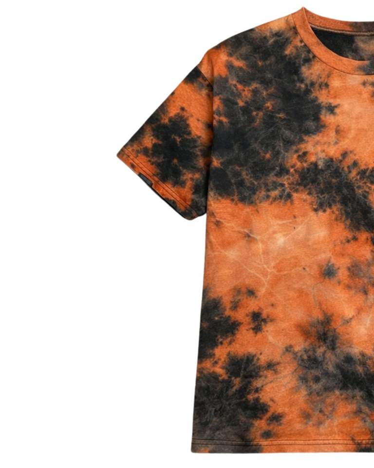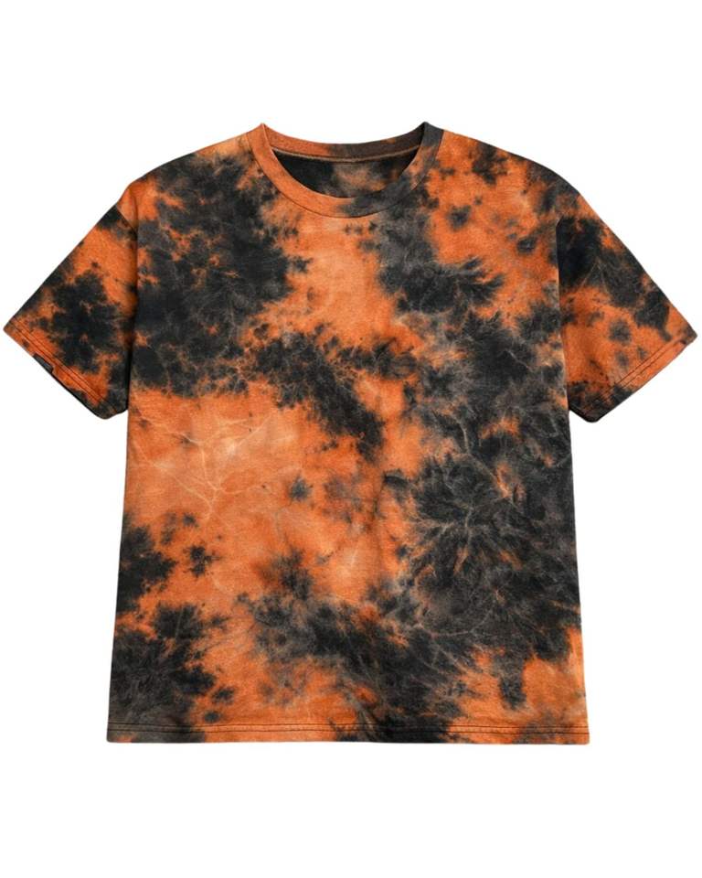 Customized Orange Black Tie Dye Cotton T Shirt Short Sleeve Crew Neck Vintage Acid Wash Mens Casual Streetwear Summer Tee