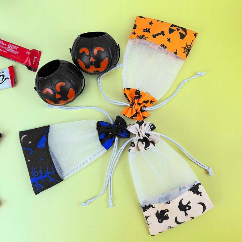 Customized Organic Cotton Organza Pouch for Halloween Drawstring Jewelry Gift Packaging Embroidery Print for Candy Promotion